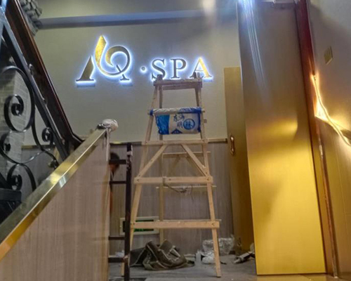 電鍍拉絲+透明水晶背打燈字